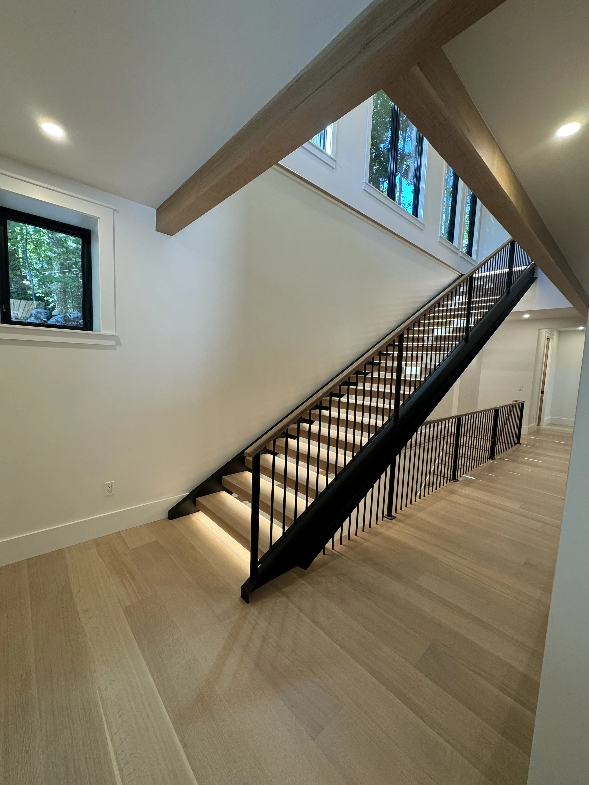 S&B Industries fabricates custom steel and aluminum rail systems for residential and commercial properties throughout the Lakes Region. These systems are designed for both interior and exterior applications, with careful attention to layout, finishes, code requirements, and proper fit within the property. Each railing project is approached as a permanent architectural element, not a standard off-the-shelf installation.